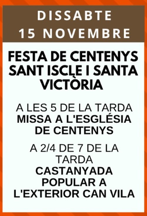 Agenda Festa de Centenys Sant Iscle i Santa Victòria 15/11/2025 < Entrada AnteriorEntrada Posterior >